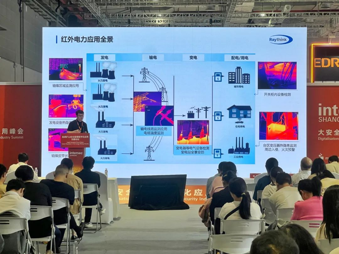 此外,在数字化应用主题论坛上,Raythink燧石技术受邀发表《能源安防红外解决方案》主题演讲。公司代表蒋日辉在演讲中强调:“红外热成像在能源安防中通过非接触式测温实时监测设备异常发热,提前预警潜在故障或安全隐患,为能源设施的安全运行提供可靠保障。”成为展会当之无愧的焦点展商。